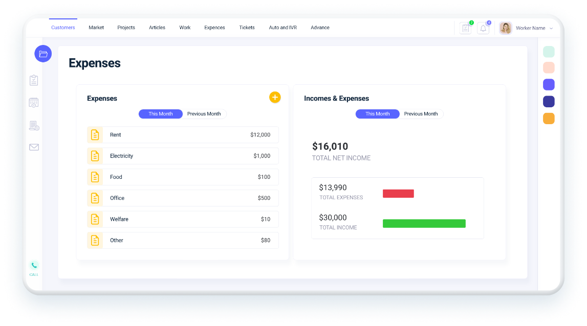 נהל מעקב מלא אחר כלל ההוצאות וההכנסות שלך. המערכת מאפשרת הקלדה של תזרים הכספים בקלות ובמהירות, פילוח שבועי או חודשי, והצגת נתונים נוספים אשר יסייעו לך להיות במעקב תמידי אחר התזרים השוטף שלך.